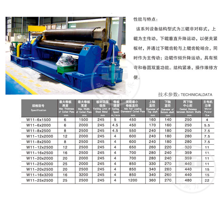 W11系列机械式三锟对称卷板机