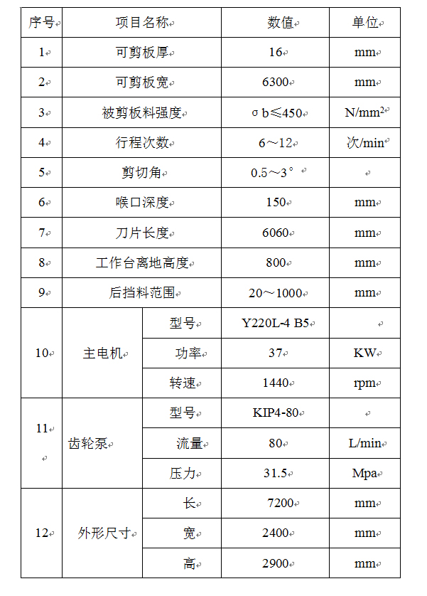 QC11Y-16×6300 机器的基本技术参数